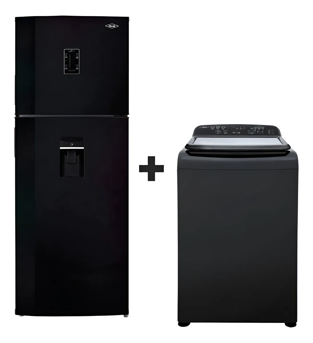 Haceb Familia Xl Nevera 448lts Inverte + Lavadora 18kg Color Negro